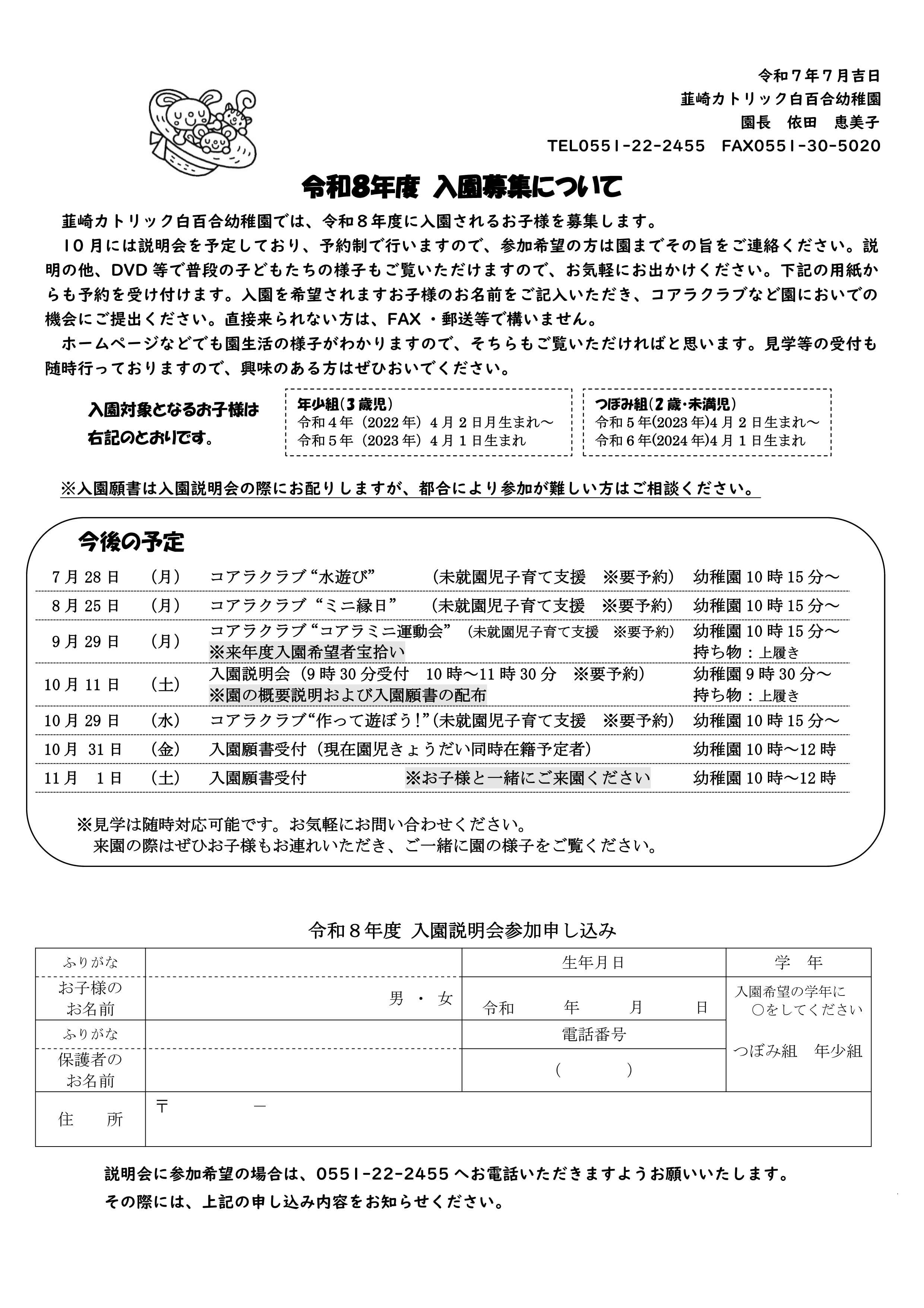 韮崎カトリック白百合幼稚園にお問い合わせください。